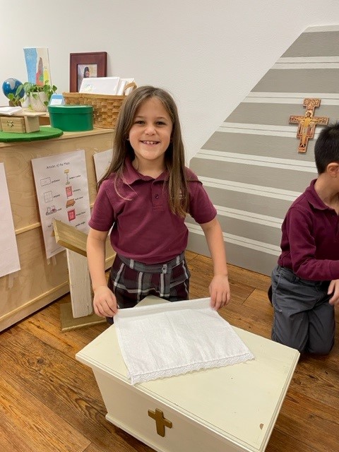 Our Atrium is organized by Mrs. Paula Burrows who is a trained catechist in Level 1 and Level 2 of Catechesis of the Good Shepherd. We are grateful for her dedication to this beautiful program that benefits our youngest students!